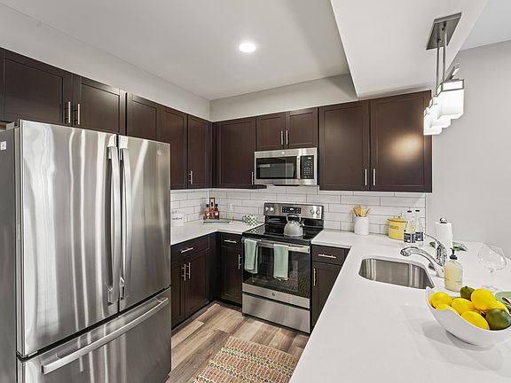 Apartment 1A Boasts a spacious kitchen, highlighted by a large quartz countertop island, complemented by a full suite of stainless steel appliances. The open-concept living area is filled with ample natural light, enhancing the sense of space. Storage solutions are exceptional, featuring expansive closet and pantry spaces .The generously sized bathroom is equipped with a walk-in shower, expansive vanity, overhead mirror, offering both style and functionality. Importantly, a stackable washer and dryer Are included in each unit ensuring convenience and practicality for everyday living.