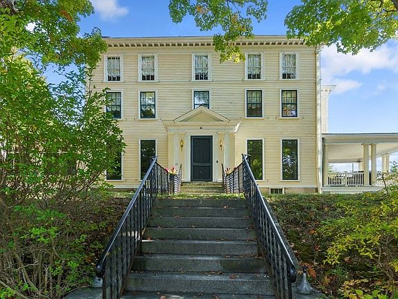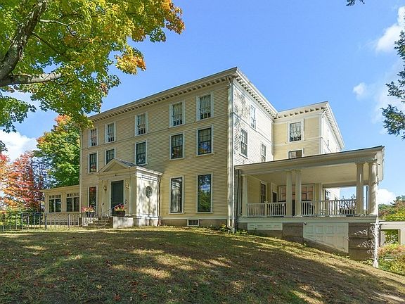 The elegant Lyman House, a gracious Federal colonial renovated and expanded in 1897 by noted Fitchburg architect Henry M. Francis, is framed by years-old noble trees and beautifully sited on a knoll on the outskirts of Ashby's charming town common. This magnificent mansion, with a great entrance hall, stately verandas, coffered ceilings, dentil moldings, transom windows, built-in cabinetry, pantry and large light-filled spaces, is reminiscent of a bygone era whose niceties will bring comfort to your spirit and peace to your soul. Among its sparkling features is a banquet-sized magazine-cover country kitchen with a generous granite island, Imperial gas stove, fir counters, farmer's sink, radiant-heated cement floor, and a multi-windowed dining area overlooking the verdant grounds below. The former grand ballroom has transitioned into a versatile modern space for music, TV, or entertaining a crowd. The home's newer features include a powerful Viesmann boiler & a 5-bedroom septic system.