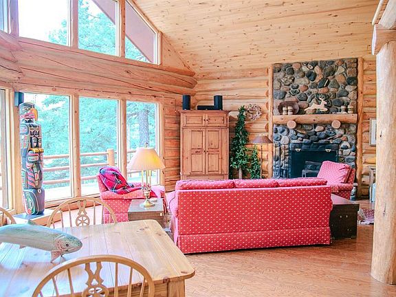 Year-round log cabin living at its finest, tucked away in the exclusive, private gated community of Big River Ranch. 1000 steps to the Rio Grande River with plenty of private fishing access points. Lovingly maintained and updated by only the 2nd owner, all mechanical items in perfect working order, nothing to do but be at your second home in time to relax for the fall colors. Fully furnished and equipped with linens, cutlery, artwork, and dishes, just show up with your fishing pole and hiking boots. Solitude, privacy, seclusion, a close-knit community, world class fishing await you at this true log cabin on 5 acres backing to thousands of acres of the Rio Grande National Forest. You will not find a better log cabin in such great shape, and in an amazing location, anywhere else in the area. Main floor living, no-stairs entry in the back of the cabin with a large driveway for easy access, the home is handicap accessible. Kitchen, laundry room, living room with fireplace, and primary bedroom with a 2nd fireplace & bathroom are on the main floor. The bathroom has been upgraded to include grab bars and converted into a shower with floor to ceiling tiles and a bench. 3 levels in all, there is plenty of room for the whole crew to stretch out. The upstairs has a game and reading loft, and two bedrooms and a bathroom big enough for everyone to bunk up for a cozy night’s sleep. Garage is a deep and wide oversized 1 car space. Plenty of room for an SUV and ATVs or a boat PLUS ski gear and mountain bikes. Natural light floods every room from the eastern facing oversized double paned windows, including the main living room, upstairs loft & eat-in kitchen. Custom prow home built with large lodgepole pines imported from Idaho by the previous owner. With 2 river rock fireplaces, aspen tongue & groove ceilings, and views across a verdant meadow to showcase aspen, pines, ancient rock formations of the La Garita Mountains, you will be entranced at every moment of the day by world class views. Watch the sun come up over the cliffs, and enjoy fresh raspberries from the bushes out back. 3 large oversized decks await your outdoor relaxing, fireside chats, BBQs, and parties. Gleaming hardwood floors, tile in the bathroom and kitchen, and soft lush carpet in the other areas of the home are all in great shape and easy to clean. Lovingly updated by this second owner of the home, multiple sources of heat include 2 wood burning fireplaces, a newly installed ETS (Electric Thermal Storage) heater, as well as recently cleaned and serviced forced-air propane furnace. Well water has been tested for cleanliness, and all checks out! The septic is set to be pumped and inspected on Labor Day. This is a year-round cabin on its own well & septic. Fiber optic high speed internet/WiFi via Ciello-some of the fastest in the whole U.S. and electricity is provided by San Luis Valley Rec. The large and oversize 1000 gallon propane tank is owned. Partially off grid, you can hunker down in the winter by the fire and forget about the outside world. Be a part of a private and established community that is steeped in history and tradition. Step back in time to a place where there is no cell phone service, and the only thing to do is decide how to enjoy yourself on vacation and make memories of a lifetime. Truly a special place, Big River Ranchers meet once a year to discuss HOA rules, and of course meet as friends and neighbors too. Community picnic area, playground, private access bridge, boat launch, and storage are available for your use. With private fishing access to the clear water of the mighty Rio Grande River, take a float or cast your line. Enjoy the birds, foxes, deer, elk, turkey, and other wildlife that are also residents of the neighborhood. People come from all over the world to this area to experience the rural and rugged beauty of backcountry adventure. Bring all offers for closing after Labor Day-just in time for fall foliage and leaf peeping.