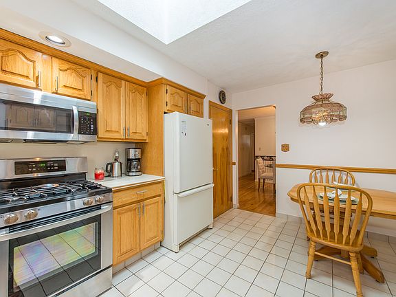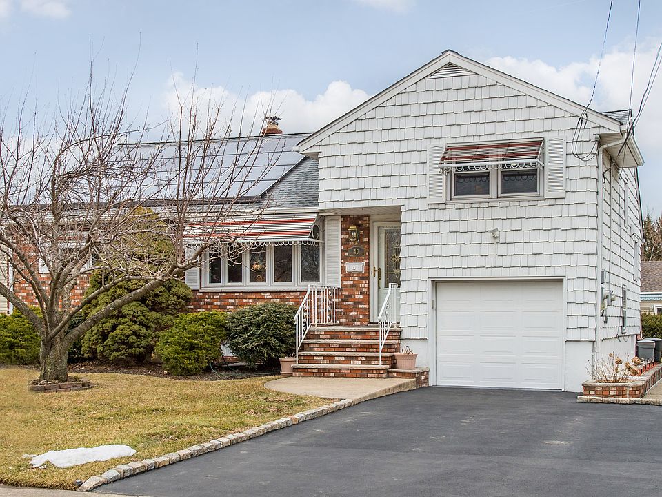 Expanded split ranch style home located in residential neighborhood across from Robinhood Park near schools, shopping and NYC trans. Immaculate, bright ,sunny well maintained offering one floor living. Enjoy quiet evenings by the fireplace in the spacious family room overlooking the private yard with patio and shed. Ideal for entertaining with open floor plan living room, dining room, eat in kitchen with skylight , 2 bedrooms and full bath on 1st floor and master bedroom with full bath on 2nd level. The finished basement offers large recreation room with summer kitchen, cedar closet, storage room and utilities room. Features hardwood floors, central air, sprinkler system, solar panels, newer roof and windows .