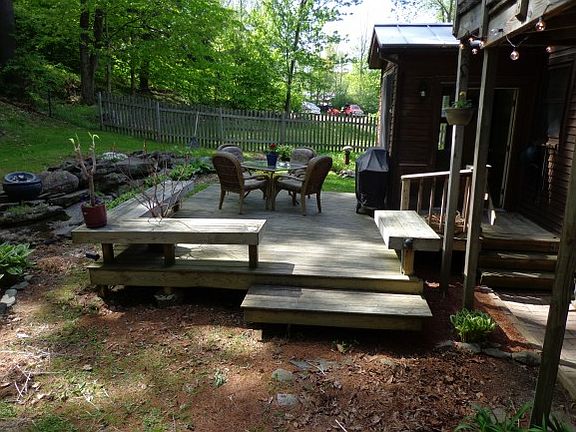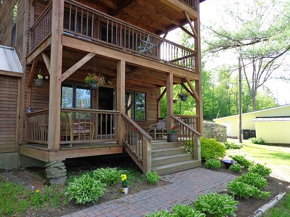 Enfield NH, Unique Post & Beam Home with Mascoma Lake Access. Quality construction with hardwood and tile flooring. Two brick fireplaces, 4 bedrooms, 2 and half baths, a master suite, with private balcony. Exterior features include Two covered rocking chair porches, Wonderful fenced in grounds with a back yard patio and deck. Attached 2 car garage plus excellent garden shed. Nicely situated back from the road.