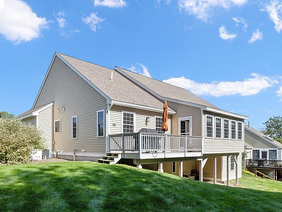 Exquisite Stone Sled condo located in a highly desired 55+ community with mountain views and easy access to shopping, commuting and the State capital of Concord. This unit has gorgeous views from the front, an open deck and private yard in the rear, and a large 3 season room off the back. Two full floors of versatile living space offer all the room you'll need for yourself and extended family. Beautiful hardwood, cork, and tile floors, vaulted ceilings, 3 full baths, a large comfortable primary suite, well appointed kitchen, a dining room that can seat 12 and a lower level with lots of additional living space that walks out to the large back yard. There's also a large cedar closet, and 2 generously sized storage rooms (one finished) that could be whatever you desire. This unique home is a treat to view and shown by appointment only.