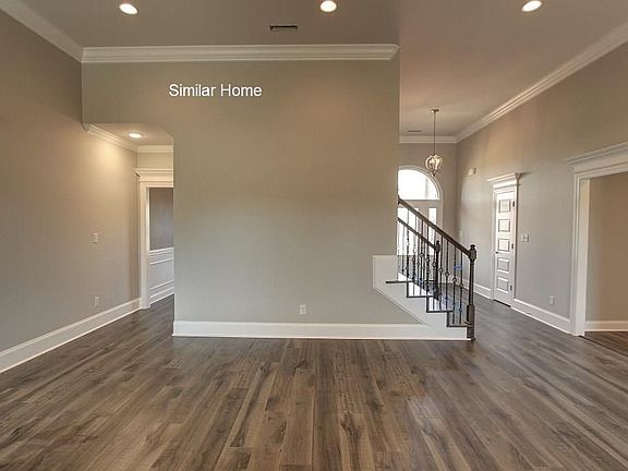 Upgrades included in price:Larger pie shaped lot.Gas Cook Top with Double Oven Package.Quartz in kitchen.Soft Close Cabinets.Under cabinet lights.The Foresthill Plan D is a two story home with 3 car side entry garage and is backed by a 2-10 home warranty.. Home has 4 bedrooms and 3.5 baths. Master suite and half bath are downstairs. Three bedrooms and a bonus room are upstairs along with 2 baths. Home has wood plus flooring (Mohawk Revwood) in all living areas and bedrooms. Great Room features 12' ceiling, extensive trim, gas-log fireplace with upgraded fireplace treatment, wood plus flooring, recessed lights and ceiling fan. Dining room has 9' coffered ceiling, wood plus flooring, extensive trim including shadow box under chair rail. Kitchen includes 9' ceiling, custom cabinetry and granite countertops, large island with bar seating, stainless appliances including dishwasher, gas cooktop, wall oven and wall microwave, tile backsplash, tile or wood plus flooring, recessed lighting, and huge walk-in pantry. Breakfast has 9' ceiling, tile or wood plus flooring and extensive trim. Master bedroom has 11' double tray ceiling, wood plus flooring, extensive trim, recessed lighting, and ceiling fan. Master bath has 11' ceilings, glamour tub, large tile shower with two shower heads and rimless shower door, separate toilet area, double vanity with granite counter tops and huge walk-in closet. The home has hardwood stairs leading to the second story. The additional bedrooms and bo