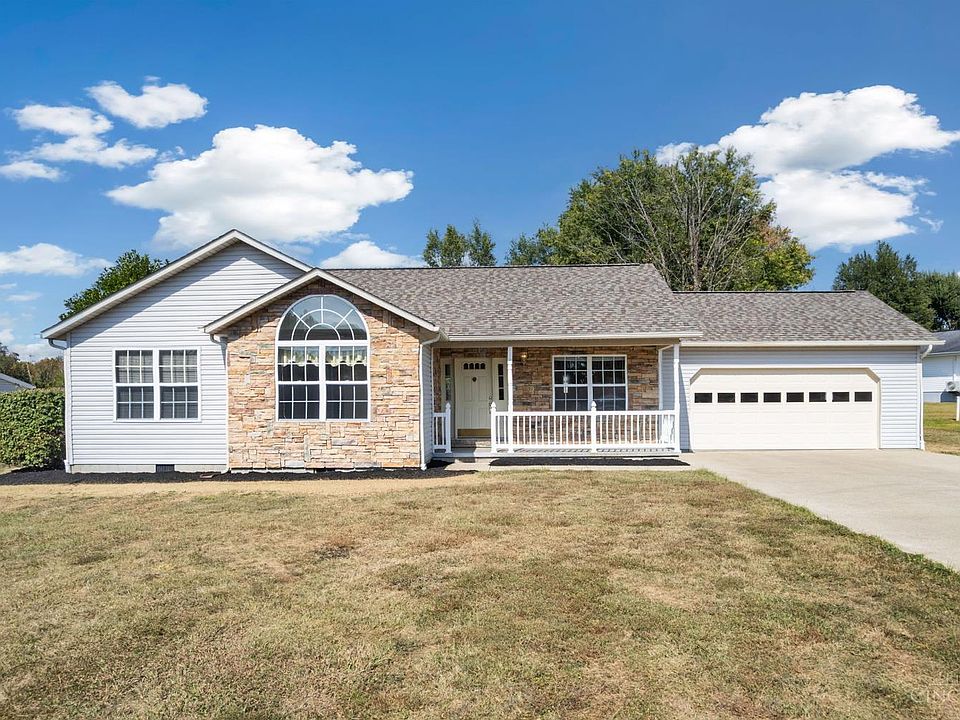 Here is your chance to own a home in Stonybrook, where opportunities don't come along often! This 3 BR, 2 BA ranch sits on a .63 acre lot with recent improvements, including a new roof, rear patio door, and insulated garage door in 2025, along with a new furnace in 2023. The home features hardwood floors in the dining and living rooms, as well as a spacious living room with a vaulted ceiling and a beautiful stone fireplace. A rear deck overlooks the backyard. The two-car attached garage adds both convenience and storage.
