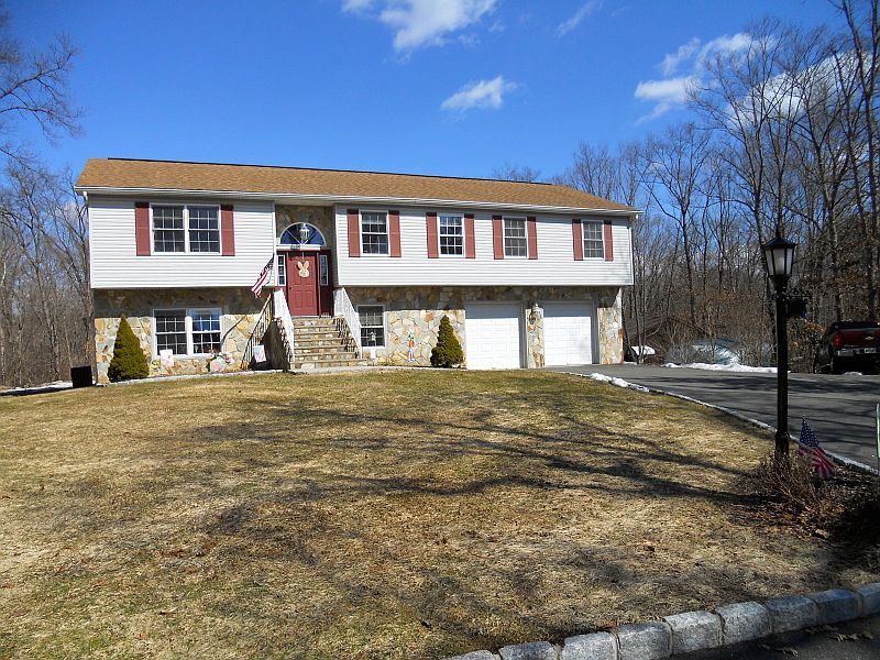 Gorgeous oversized bilevel on over an acre of property, close to Route 287. Main level of home has large rooms including LR, DR, EIK, four bedrooms and two full baths. Exit to rear with new maintenance free deck that spans entire length of home with stairs to in-ground pool. Home speaks for itself with huge, tastefully done, L-shaped family room with full wet bar, wood burning stove and walk out to rear yard and hot tub. New powder room plus office on lower level. Large outbuilding perfect for shop, car enthusiast or many other uses, with its two overhead doors, electric, and wood burning stove. Three additional sheds on property plus covered wood storage structure. Don't miss this Gem, tucked away in private location.