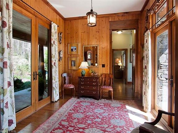 Surrounded by 11 preserved acres of orchard, hiking and equestrian trails, this cedar and stone, architect designed home offers intimate mountain views from every room. Truss and beam great room showcases a 20 ft fireplace and connects to a European inspired kitchen. One lvl living w/ guest suite upstairs. Sunsets from patio or 2 scr. porches, est. gardens. Sitting in the cloud's lap outside, inside is lit by harmony of design, exquisite details and quality materials.