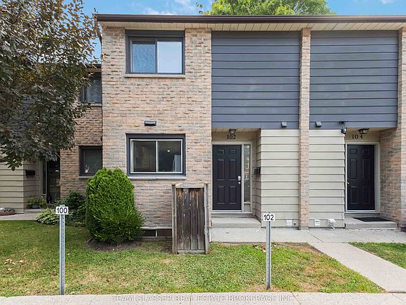 Welcome to this updated 5-bedroom, 2.5-bath townhouse in North London. 102-40 Summit Ave is a prime opportunity for investors, students, or families seeking a flexible, low-maintenance lifestyle in a highly connected location. Boasting a projected 7.34% cap rate and potential rental income of $3,750/month, this property offers exceptional returns in one of the city's strongest rental markets. Inside, the bright open-concept main floor creates an inviting space for gathering and entertaining. The kitchen, filled with natural light, flows seamlessly into the living area with its durable LVP flooring which is ideal for high-traffic use. Upstairs, the large primary bedroom with double closets provides ample storage, while the additional bedrooms are well-sized and functional. The fully finished lower level adds even more value with two generous bedrooms, a full bathroom, and laundry facilities; perfect for maximizing rental potential or accommodating extended family. Outside, a private patio backs onto mature trees and green space, creating a peaceful retreat to relax or study. With thoughtful updates and a layout ideal for shared living, this turnkey property could deliver both immediate cash flow and long-term appreciation potential. The well-maintained complex is within walking distance to Cherryhill Mall, grocery stores, and parks, with quick access to Western University and all the amenities the area is known for. Opportunities like this don't last! Add a high-performing asset to your portfolio or move into a perfect family home today!
