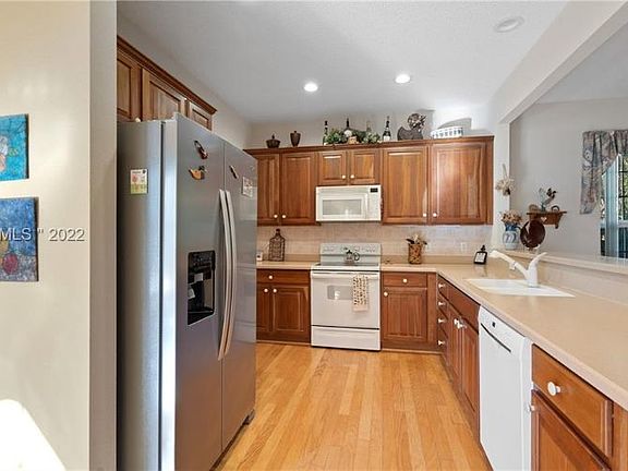 Very well maintained and move-in ready Egret with beautiful hardwood floors and paver driveway. Open living area has plenty of light. Kitchen has corian countertops and plenty of storage. This spacious home includes a sunroom, extended garage, and built-in in the home office den and murphy bed and built-in work area in the guest bedroom with tons of storage. Backyard is very private and adjacent to preserved area. Newer HVAC and clean stucco report