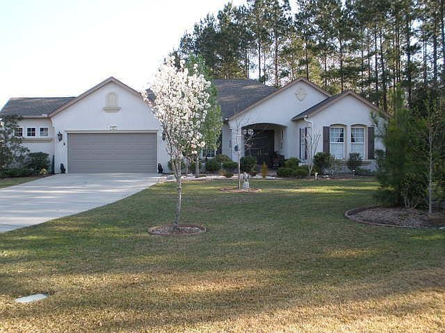 Elegant Estate, Del Webb built, model on private lot over one half acre of lush trees & plantings at end of cul-de-sac. 2.5 car garage, golf cart storage or hobby room. Elegant entry way with double trey ceiling, niches for displaying art work & beautiful chandelier. Den with french doors; wonderful private guest suite w/private bath. Powder room off foyer. Upon entering the living room, a wet bar is on the left with storage under counters & curved bar for stools. The living/dining area is 23 x 25. Big kitchen w/corian countertops & sink, center island, breakfast nook surrounded by windows & access to screeened porch. Big utility room & double pantry. The garage has pull-down stairs for attic storage and of course the extra bay for the golf cart or hobby area. The screened porch is "L" shaped and surrounds the kitchen, lving & dining areas. The Master bedroom suite has a huge linen closet in the hallway, bay windows overlooking the lagoon & woods and the master bath room is to die for. Corner shower (oversized), soaking tub, double sinks & huge closets. This home is exceptional and at a special price for quick sale - 2423 sq ft @ 325,000. Subject to third party