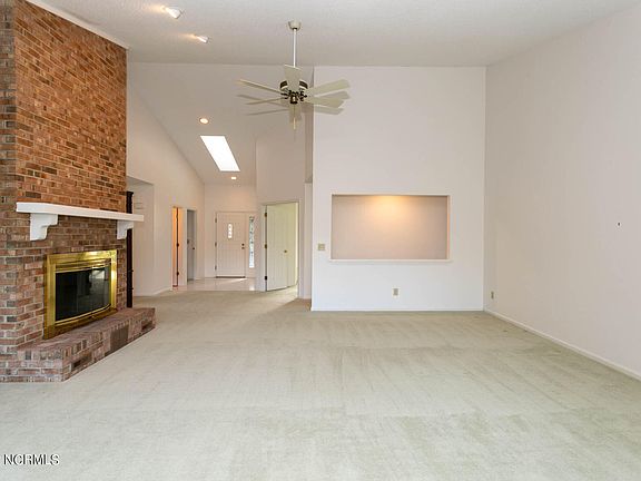 Great brick, waterfront home in Whispering Pines on a beautifully landscaped lot with peaceful, serene water views from every room across the back. It offers a bright, open floorplan with spacious rooms, all on one level. The living room has a floor to ceiling brick fireplace, vaulted ceiling and large windows across the back overlooking the backyard and water. The adjoining dining room also has a picture window offering great views down to the water. A spacious kitchen with lots of wood cabinetry, counter space and island with second sink opens to a large family room with corner brick fireplace, sliding glass doors opening to a back deck and bay wall of windows allowing lots of natural light. An office/den is off the family room, along with a large laundry room and closet with built-ins cabinets. The owners' bedroom in this split plan home has sliding glass doors opening to a private back deck overlooking the water with his and her bathrooms. A guest bedroom suite has two large closets and private bathroom. There is a great deck spanning the back overlooking a private backyard and water. Stone paths lead down to a dock. A detached two-car garage has a separate RV bay and a workshop. There is also a whole house generator which is a great addition to any home. This is a great opportunity to enjoy lakefront living in a wonderful neighborhood!