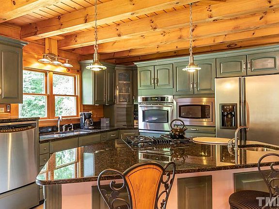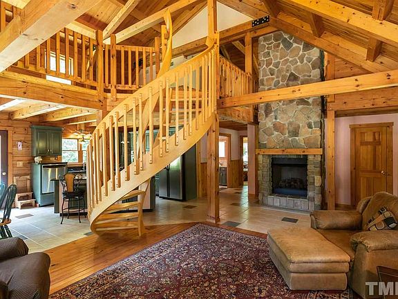 Nestled on 1.88 acres this amazing Log Home is sure to be a crowd pleaser. You will be welcomed with a large covered front porch & be delighted with a one of a kind circular Staircase that ascends to the private master living area w/its own sitting area, stone F/P & master bath. Downstairs you will enjoy an open floor concept w/another stone F/P, gourmet appointed kitchen & 2 large bdrms w/full bath. Enjoy the in-ground swimming pool! Don't forget the detached 2 car garage & storage shed.