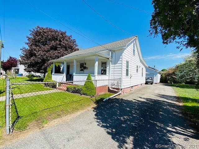 BEAUTIFUL FENCED IN YARD sits this 4 bedroom Cape w/ 1 1/2 baths waiting for your finishing touches! PAVED DRIVEWAY leads to a 1 car DETACHED GARAGE. HARDWOODS throughout and LARGE LIVING ROOM and DINING ROOM. APPLIANCED eat in kitchen and first floor laundry. 2 beds on first floor w/ bathroom (DATED) and 2 bedrooms up w/ 1/2 bath (DATED). COVERED porch off the deck needs tlc but great place to spend your evenings. CITY WATER amd SEWER. 2015 ROOF! ASK about the CREDITS. NEEDS TLC and sold as is.