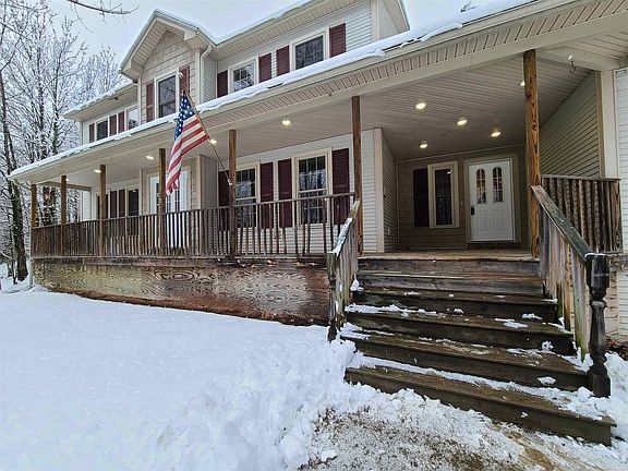 Ideal opportunity for privacy seekers and nature lovers! Situated on 9.82 acres this 2400 square foot 3 bed 2.5 bath home offers flexible space and privacy. The first floor features a spacious kitchen with cherry cabinets that opens to a formal dinning space with cherry HW floors. Large living room allows for flexible furniture layout with direct access to back deck. Large mudroom with 1/2 bath complete the first floor. The second floor features three spacious bedrooms with Japanese oak HW floors Master suite and laundry room. Other home features include a 30x32 garage, radiant heat, new bath floors in main bath and master, new carpet in living room. A unfinished walkout basement can be easily finished if more finished space is desired. Be sure to check out the trails that run throughout the property!