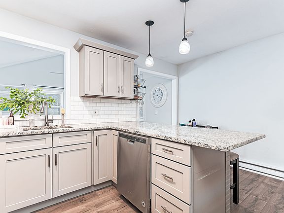 Lake Living is Calling! Discover the ultimate retreat with this 1,200 sq ft beautifully updated and spacious home, perfectly positioned just a short walk from the sparkling waters of Beach Pond! If you dream of combining modern finishes with the tranquility of a woodland setting, your search is over. The heart of the home features new granite countertops and sleek stainless steel appliances, perfect for the home chef. The main living room boasts a soaring vaulted ceiling, creating an airy, light-filled space for relaxation and entertaining. The living room is adjacent to a private rear deck, offering a serene spot to enjoy your morning coffee while overlooking the peaceful backyard and surrounding woods. Your street culminates at the tranquil shores of Beach Pond. Enjoy swimming, boating, and fishing without the high cost of direct waterfront. Features two full bathrooms (one upstairs, one downstairs) and a cozy wood stove for efficient, all-season comfort. Includes an integral garage and ample on-site and off-site parking, providing plenty of room for vehicles and toys. Recently updated electrical and meticulously maintained-just unpack and start enjoying your new lifestyle immediately! More than a home, this is a move-in ready haven where peaceful living meets endless recreation.