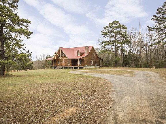 Looking for a log cabin in the woods with a little acreage this is it. Well built home that needs some finish work to complete it. Master bedroom and bathroom and one guest room and full bath are downstairs. Upstairs is a large landing area with 3 more bedrooms and a bath. You will the love the peace and solitude while relaxing on the large porches. Downstairs is mostly complete needs some trimwork done and cabinet doors. Upstairs needs trim, doors, paint and flooring. You can put the finishing touches on.