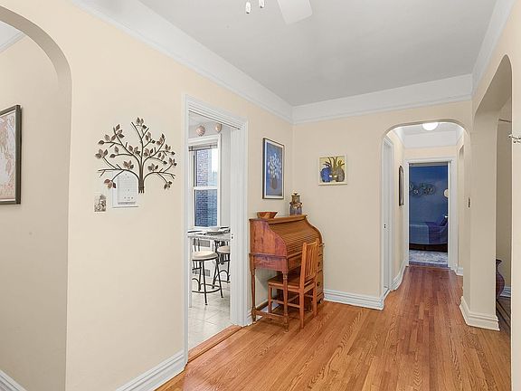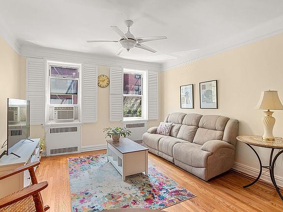 The home you have been waiting for on a quiet tree-lined street in Kensington!! This serene, stunning, beautiful two-bedroom home has Art Deco charm and grandeur with 9-foot ceilings, a spacious living area, five large closets, gorgeous hardwood floors, ceiling fans throughout and a renovated kitchen and bathroom. The foyer is large — big enough to accommodate a home office and features built-in bookshelves and arches that lead into the living room which has a dining area and overlooks the trees along Tehama Street- an oasis in the city. The beautifully renovated, windowed kitchen boasts lots of cabinet space, stainless steel appliances and a built-in breakfast nook, while the renovated, windowed bathroom features a gorgeous tiled shower area. The large primary bedroom has two closets- and is roomy enough for a king size bed with a separate seating area, while the peaceful second bedroom is also a generous space. This home will also convey with two large private cages in the building storage room!! The 40 Tehama Street building is pet friendly and wired for FIOS, has two elevators, a live-in superintendent, central laundry and bike and storage rooms in the basement {bike spots have a separate monthly fee of $5/month per bike on availability}. There is a common backyard with planters, tables, play area, outdoor sink for gardening and dog run area. The building also has created a green space by the entrance to the building. Only one block from the F/G train at Church Avenue Station and B67 bus stop. A short distance to Prospect Park, Greenwood Cemetery and all the hip shops and restaurants along Fort Hamilton Parkway, including Steeplechase Coffee, Hamiltons, and Brancaccio's Food Shop.