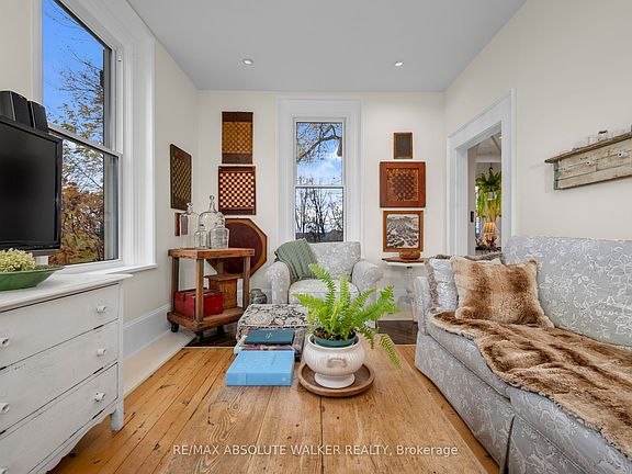 Welcome to this remarkable century home in the heart of Almonte, a perfect blend of heritage charm and modern comfort on an oversized double lot. Perched at the end of a quiet dead-end street, this rare end lot enjoys sweeping elevated western views of the Mississippi River, the scenic River Walk, and the iconic Rosamond Woollen Mill. Lovingly maintained and thoughtfully updated by its current owner, this home seamlessly balances history with sustainability. The structure has been enhanced with updated insulation, energy-efficient windows (installed in 2020), and a newly added wood stove for cozy evenings.The natural gas boiler provides efficient radiant heat, and the home is EV-ready with a 50-amp connection in place. With upgraded 200-amp electrical service and a new roof (2022), every detail has been carefully considered for modern living. Inside, you'll find three spacious bedrooms plus a bright office that offers panoramic river views, the perfect space to work or unwind. Two full bathrooms and a flowing layout combine classic craftsmanship with practical design.From its eco-friendly upgrades to its timeless character, this property offers a rare opportunity to own a piece of Canadian heritage, a home that honours Almonte's rich history while embracing the needs of today's homeowner.