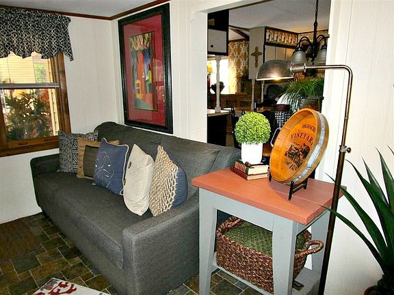 This beautifully decorated, turn key, 2bd/2ba home could be yours in as little as a week. Located in wonderful Pine Hill Park (55+), this home is exquisite, the minute you walk in your feel like you are home. Warm inviting colors, newer carpet, new bathrooms, large 10X19 bonus/sun room, end of the road privacy and quality furnishings. Tremendous outdoor living space also comes with this home, there is a 19X30 deck and a 17X19 patio area with red brick pavers. All the outdoor furniture, decor, grill, smoker and fire pit come with this home, it is truly TURN KEY. Beautifully landscaped flower gardens, flowering bushes surround the home and need I mention it comes with a VIEW. For only 135.00 per month you get basic cable, water, sewer, lawn maintenance, road maintenance, use of the pool, club house and scheduled activities in the spring and summer. This maybe a 55+ park but it is very active. Don't miss you chance to own this one.