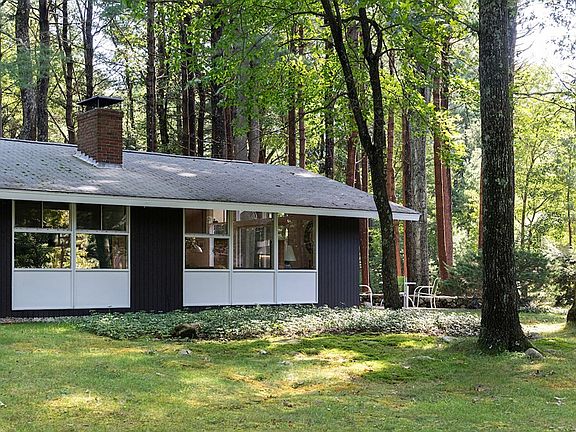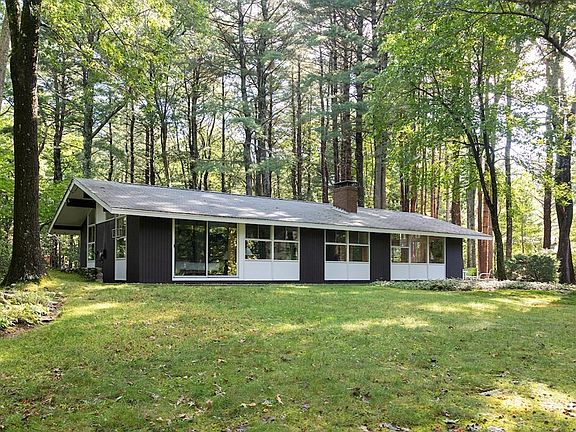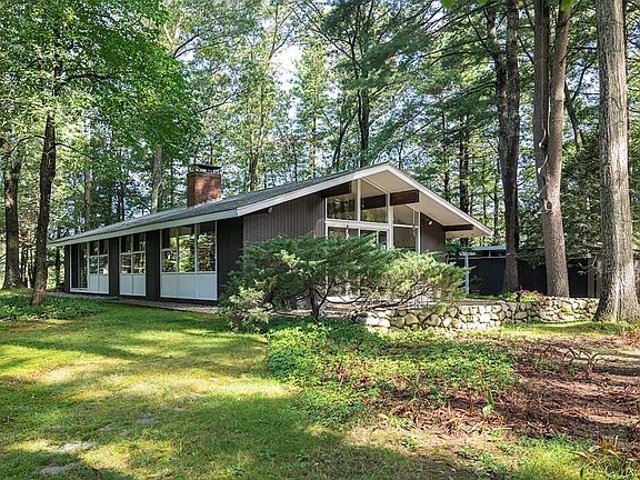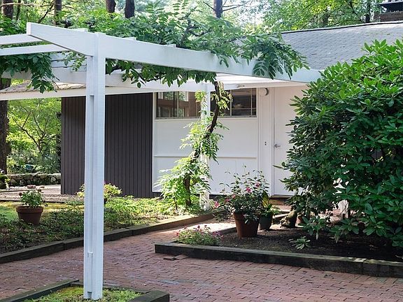 Imagine watching all of the seasons from the expansive walls of glass in this remarkable midcentury-modern home designed by pioneering architect Carl Koch. Set off the road among the pines on a woodsy level lot, this post-and-beam home welcomes you warmly, from its cork floors to its cathedral ceilings. You'll feel like you're vacationing at home in this retreat, part of the Turning Mill neighborhood with bonded membership in the beloved Paint Rock Swimming Pool. Almost surrounded by conservation lands and trails: the Landlocked Forest, Paint Mine & Hennessy Meadow. Neighborhood kids walk to the highly-rated Estabrook Elementary. The one-level efficient floor plan features four good-sized bedrooms, two full baths, and laundry down a ship-lapped hallway, while the living area is open plan, kitchen, dining area, and the dramatic living room, where indoors and outdoors blend almost seamlessly. A 3-year-old Buderus boiler heats the home. Gaggenau kitchen appliances. This should go fast!