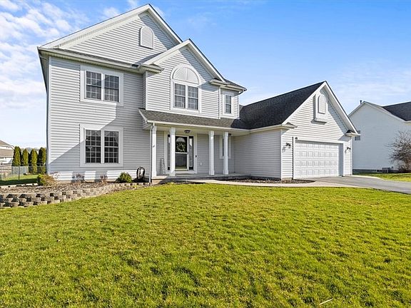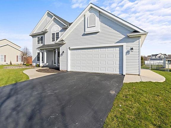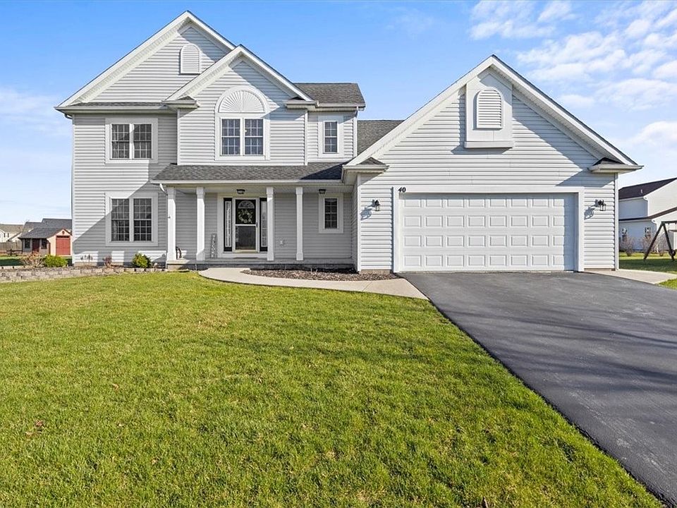 Welcome Home to 40 Union Station Road this 4 bedroom Colonial will charm you upon entering. This home features formal dining room, eat in kitchen that overlooks cozy family room with Gas fireplace, Primary bedroom with walk in closet and full bath, 1st floor laundry, fullly fenced backyard with concrete patio great for family gatherings, 2.5 car garage with convenient access to basement, built in shelves and work bench in basement all of this plus more. Conveniently located to 490 and walking distance to Black Creek Park. Delayed negotiations until June 21,2023 by 5:00 PM