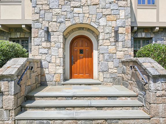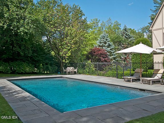 Private Calhoun Drive Association just minutes to downtown Greenwich, is the site of this 6 bedroom home featuring light filled living space on four levels. Tasteful décor and recent improvements enhanced the fabulous floor plan. Enjoy high ceilings, custom millwork, handsome wood flooring plus three limestone fireplaces. The main level includes an elegant living room, formal dining room and a handsome library. Custom gourmet kitchen with separate breakfast room and adjacent family room. Elegant owner's suite offers a dressing room, two walk-in closets and a luxurious bathroom with soaking tub and shower. There are four more bedrooms on this level, as well as a second family room and an office. Lower level with exterior access boasts a family room/media room and gym. Pool with auto cover.