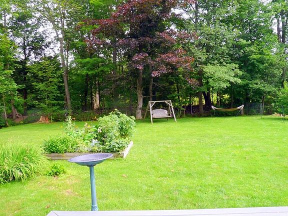 A gem of a property here! located near the heart of town center and a few minutes by bike ride to Umass! Very desirable south facing backyard which abuts the Massachusetts Center for Renaissance Studies 28-acre grounds. Numerous updates have been made in this spacious ranch; replacement windows and doors, fresh paint, composite deck, buderus boiler, electric panel, french drains. Newer stainless appliances and kitchen cabinets with granite countertops too! The master bedroom enjoys a cozy half bath too. This is a highly sought after location within a neighborhood with many areas of open space and nature.