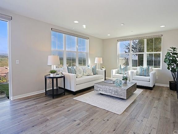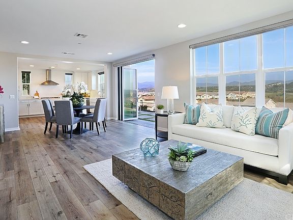 Spectacular View lot with beautiful vistas from nearly every room. Engineered wood plank floors, two 3-panel bi-folding doors, motorized shades in the living area and master bedroom, and a built-in rooftop bar area are all some of the luxurious upgrades that await you at 40 Vasto. Quality materials were liberally used to create a luxury home for a great value. This beautiful kitchen is upgraded with real wood white shaker cabinetry with chrome pulls, coveted porcelain farm sink, white wavy oversized subway tile backsplash, large upgraded "Snow White" speckled quartz kitchen island and countertops. All GE Monogram stainless steel appliances include refrigerator, 5 burner stovetop, chef's oven, convection microwave, dishwasher, and oversized range hood. Great room concept with dining area and large family room with motorized shades and stunning views from the bi-folding door and every window. Convenient first floor bedroom with wood laminate flooring and full bathroom is the perfect guest suite. Upstairs are two secondary bedrooms with walk in closet, upgraded ensuite bathrooms and ceiling fans plus large laundry room. Master bedroom is a sanctuary with motorized shades, ceiling fan, large soaking tub, dual sink quartz vanity, generous walk-in closet and step in shower. Head up to the third floor bonus room with wood laminate floors, built-in bar area, bi-folding door to rooftop deck with custom pergola. An amazing home awaits you in the resort style community of RMV!