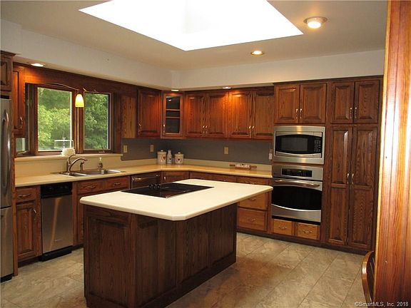 Welcome to one of the finest homes at the end of a quiet cul de sac street in the Forest Park area of Danielson. Sitting proudly on a beautifully manicured and landscaped double lot, this tri level home offers something for everyone in the family. Large foyer area opens up into a gigantic living room with bow window. The fabulous kitchen, beaming with tons of natural light from the skylight is perfect for family gatherings with it's large center island, built-in desk, stainless appliances and tons of cabinets and storage space. The adjoining formal dining room steps out onto the deck which over looks a huge backyard withplay area. Large brick fireplace and bar area take up the corners of an awesome media room, complete with movie theatre carpeting! Also on this level is a small bedroom/den/office. Down the hall is a new remodeled bathroom and large laundry room, with closet and sink. On the upper level are 3 generous sized bedrooms. The master has it's own 3/4 bath. Across the hall is a huge bathroom with shower stall and jetted tub for relaxing. The bottom level has a fantastic finished room, which has the possibility of use for an in-law. There is also an enormous walk-in cedar closet. Off the media room is a three-season screened in room perfect for entertaining the company you will have since you will want to show off your beautiful kidney-shaped pool. Alongside the pool is a wonderful pool house equipped with its own bathroom.
