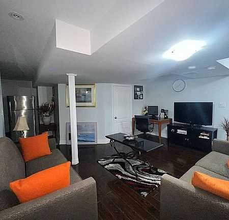 Private separate entranceModern open-concept layoutHigh-end kitchenQuartz countertopsStainless steel appliancesLaminate flooringIn-unit laundry