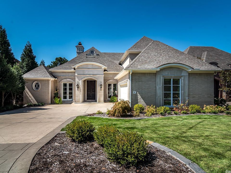 Exquisite home featuring timeless architecture located in the gated community of The Arbors, a short walk to Chenal Valley Country Club with stunning views of the golf course. The entry opens to 14ft ceilings featuring beautiful open, light filled spaces w/ sophisticated finishes. The dining room is open to the great room flowing into the den and chef's kitchen. A luxury master suite + guest suite are on the main level. Upstairs offers 2 bedrooms w/ ensuite baths and a den. Two car + golf cart garage.