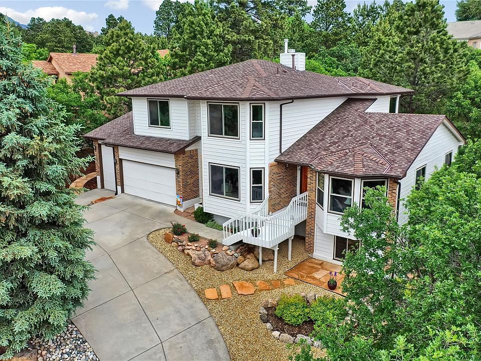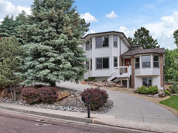 This beautiful home is sparkling clean and move in ready! Meticulously cared for inside and out. Featuring gorgeous hardwood floors on the main level and stairs to the upper level, vaulted ceilings and large windows let you enjoy the outdoors from inside. The kitchen is serving up smiles with an abundance of cabinet and countertop space, center island with cooktop & downdraft, planning desk, a pantry and a beautiful eat in area that looks out to the lush outdoor space. The bright entry opens to a spacious formal living room, a formal dining room, a large private office, updated powder room and separate laundry room with cabinets. The huge family room with brick fireplace offers a large space for gatherings and walks out to the private concreate patio. The upper level offers a total of 4 bedrooms & 2 incredibly updated baths. The landscaping is enchanting with mature trees, scrub oak, boulders, flowers and views which gives you the ultimate Colorado feel you've dreamed about.