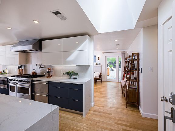 - Features: Counter - Solid Surface, Dishwasher, Double Oven, Garbage Disposal, Gas Range/Cooktop, Ice Maker Hookup, Microwave, Range/Oven Built-in, Refrigerator, Skylight(s), Updated Kitchen