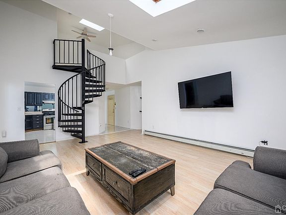 Welcome to this stunning 2-level condo, offering 3 Bedrooms, 2 Full Bathrooms. Main Level: Includes 2 bedrooms a full bathroom and in unit washer and dryer. The spacious family room boasts cathedral ceilings with skylights, creating a bright and airy atmosphere. The family room seamlessly opens to the kitchen, perfect for entertaining and daily living. Second Level is accessed by a perfect spiral staircase, this level offers a large room that can be used as an office or a relaxing space, complete with cathedral ceilings and a skylight. The master bedroom on this level features a full bathroom and ample space for your needs. Garage Parking, Secure in-building garage parking spaces are included for your convenience. This condo provides a harmonious blend of space, light, and modern amenities, making it the perfect place to call home. Schedule your showing today and discover all that this beautiful unit has to offer! Conveniently located to highways and easy access to New York city