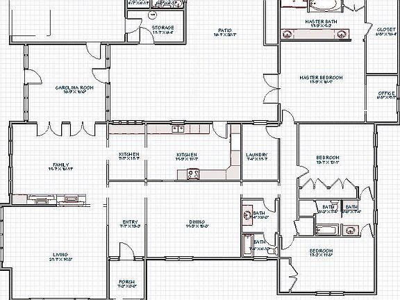 - Rooms: Dining Room, Kitchen, Bedroom 2, Bedroom 3, Carolina Room, Master Bedroom, Bedroom 4, Garage, Office, Family Room, Foyer