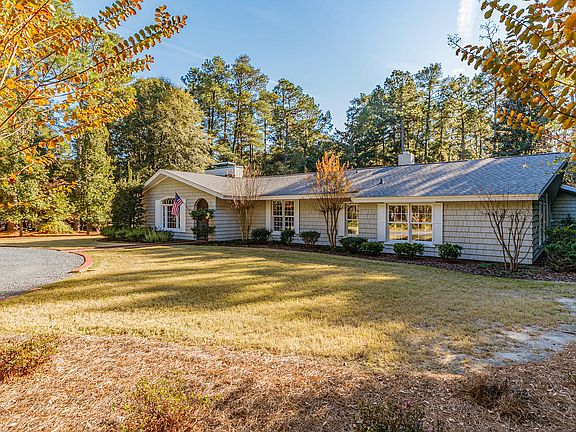 Elegant and luxurious Old Town Pinehurst home perfectly situated on an .92 acrecorner lot under a mile to the Village of Pinehurst. Built in 1954 and completely remodeled in 2003. Brazilian cherry floors, 2 fireplaces, multiple living spaces, large bedroom suites, remodeled kitchen with granite countertops and stainless steel appliances. The house is U-shaped and built around a beautiful outdoor patio with newly constructed firepit. Not included in the heated sq. ft. of the house is a separate 1 bedroom, 1 bath suite that is heated with a space heater and cooled and accessed off the patio and perfect for guests, in-law or adult children. This bedroom is included in the number of bedrooms and bathroom offered in this MLS listing. A membership to the Pinehurst Country Club isavailable for transfer. Golf cart is included in sale. Lot next door is owned by adjoining property owner, giving added privacy to this home! Perfectly located for high end, up and coming U.S. Open rental!