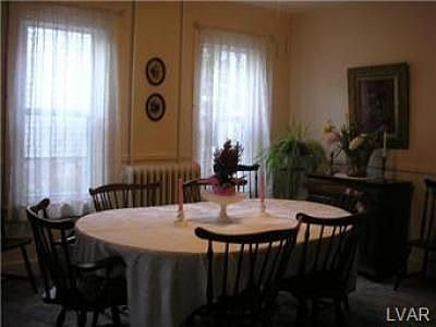 Beautiful twin located close to Moravian College on a nice size lot. From the covered front porch to the covered brick patio in the back yard, this house shows pride of ownership in every room. Current owner has resided here for 57 enjoyable years. Nice size living room, large dining room, family room with built in desk and kitchen with eating area. There are 3 good size bedrooms on the second floor and an additional room on the third floor which could easily be finished into another bedroom or playroom. Basement has lots of storage and exit to the rear yard. Add to all of this, a 2 car garage and great yard, and this house won't last long!