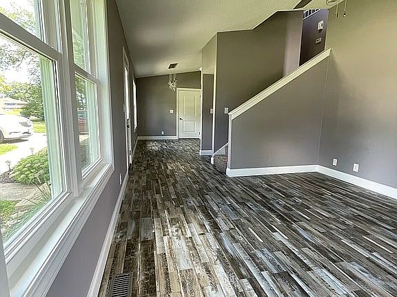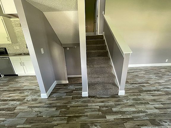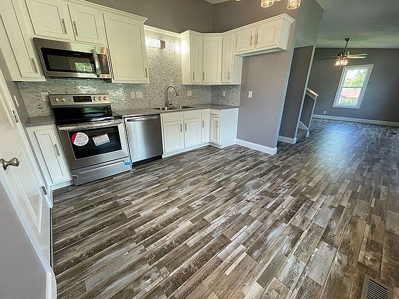 3 bedrooms 2 full bathrooms 10 ft vaulted ceiling in the kitchen and living room 11 ft vaulted hallway ceiling upstairs 9 ft garage ceiling New cabinets and tops in kitchen and bathrooms New frigidaire stainless kitchen appliances New windows New doors and trim New garage door and opener Wi-Fi compatible New lighting throughout Large concrete driveway 10x13 metal shed with concrete floor Large double lot Master bedroom is 15x11 located downstairs Bedroom #2 is 10x11 upstairs Bedroom #3 is 10x11 upstairs Laundry room is 8x11 downstairs Garage is 12x23 Attic fan Garbage disposal