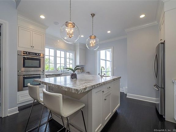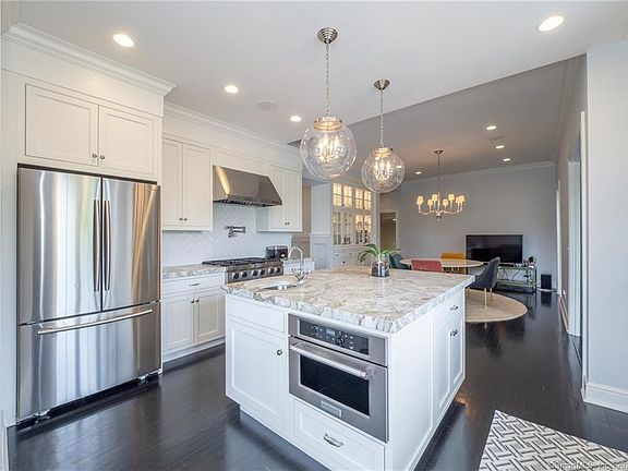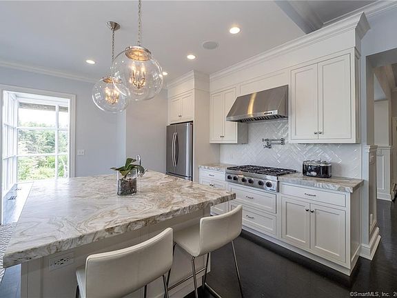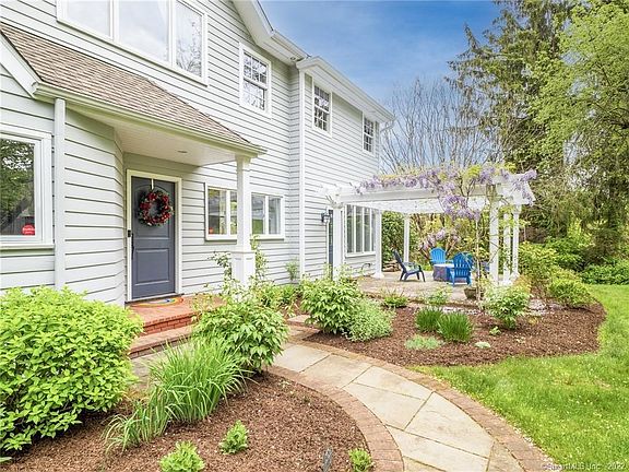 Refreshing, sunlit, tranquil yet fashionable, are just a few of the words that best describe this fabulous contemporary colonial home located at 40 Warncke Road. From the minute you enter the gates, you are surrounded by lush green lawn, lovely landscaping, views galore and interesting architecture. This home was totally renovated several years ago so all one needs to do is unpack. Enjoy the ever popular eat in white kitchen that will delight every chef. Your guests will never want to leave the dining room table as the room features floor to ceiling windows with gorgeous views. The spacious family room is a show stopper with rich gray walls, built ins, wet bar and french doors leading to a huge deck. Bedroom space is not an issue with the Primary offering a lovely full bath and walk in closet and 3 additional bedrooms with a hall bath, plus laundry, all of the second floor. An additional room for guests can be found on the walk out lower level with access to a full bath as well as a recreation room and work out space. This property is located in one of Wilton's most popular neighborhoods known for its proximity to schools, fields, walking and biking, trains and access to Town Center and NRVT without a car. The ideal house for everyday living as well as hosting friends and family for parties. Enjoy the Wilton July 4th fireworks right from the deck. An exceptional home.
