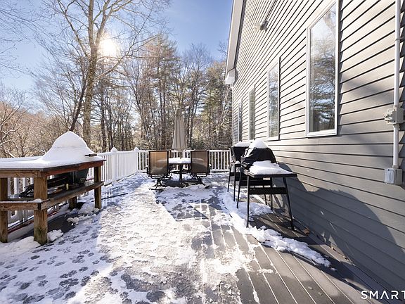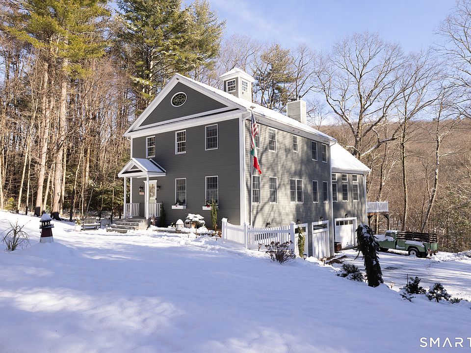 Welcome to Barkhamsted, Connecticut - a nature lover's paradise known for its world-class fly fishing and boundless outdoor recreation. This stately and private contemporary colonial sits on 2.39 lightly wooded acres, offering over 3,200 square feet of beautifully maintained living space. With three generously sized bedrooms and three full bathrooms, this home perfectly blends comfort, style, and function. Inside, you'll find an open floor plan featuring oak hardwood floors, a formal living room with built-ins, a first-floor office, and a bright, cathedral-ceiling family room that invites natural light throughout the day. The eat-in kitchen includes a large center island and breakfast area ideal for gatherings and everyday living. Upstairs, the spacious primary suite offers a walk-in closet and a beautifully appointed bath, while a Jack-and-Jill bathroom connects the additional bedrooms. The exterior is equally impressive - granite steps lead to the front entry, and a wraparound Trex deck provides stunning seasonal western sunset views. The heated four-car garage with 10-foot ceilings offers ample space for vehicles, hobbies, or storage. Additional highlights include a partially fenced yard, underground utilities, LeafGuard gutters, and Andersen thermal-pane windows - all systems well maintained and approximately 25 years young. Located just minutes from Ski Sundown, kayaking, boating, hiking, fishing, and camping, and within 20-30 minutes of major shopping, interstates, local restaurants, breweries, and wineries, this home combines peaceful country living with everyday convenience. Come experience the beauty, privacy, and lifestyle that make this Barkhamsted gem truly exceptional. 3,249 heated above sft & basement also 3,249 heated.