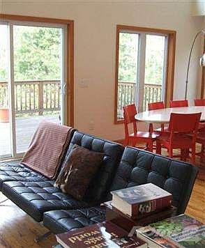 Just 2 hrs from NYC, this sun-drenched home at the end of a quiet road is thoughtfully divided into private & living space, starting with an open-plan area with living room, cosy fireplace, dining area & kitchen with breakfast bar. A cathedral ceiling & expansive windows allow year round light to fill the home. A spacious deck is just beyond the sliding glass doors for morning to night enjoyment. Situated just down a short hallway, is the master bedroom with en suite bathroom & 2 additional bedrooms & 1 bathroom. Upstairs, a small loft space overlooks the living area and provides a bright contemplative spot for reading or relaxing. Behind that, a large studio is the perfect space for artistic pursuits or an additional bedroom or home office. Set back from the road, this house enjoys privacy & seclusion, & proximity to NYC makes it an easy weekend escape to relax & recharge. It comes with deeded access to Lake Bodine for swimming & boating, an easy 0.5 mile walk down the road. Brokered And Advertised By: Country House Realty, Inc. Listing Agent: Lindy Goodman
