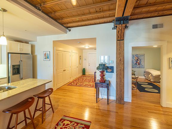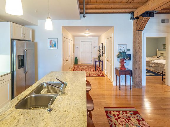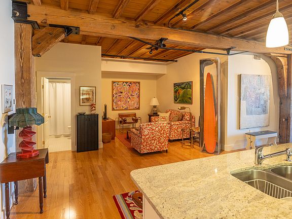 You really can have it all with this impeccably well maintained, large, open and thoughtfully designed condominium unit located in the hear of downtown Camden. The rich history of this repurposed, 30-unit condominium Knox Mill building includes original architectural details including exposed wood beams, high ceilings and oversized windows with modern conveniences of an elevator, a parking garage with designated vehicle spaces, an in-house bar and restaurant and walking distance to the local coffee cafe, corner stores and harborside activities. Conveniently located just steps from the elevator and stairs. Wood floors, granite countertops and spacious storage closets are just some of the notable features. A great opportunity and investment.