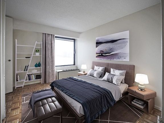 One bedroom one bath apartment with lots of closet space, classic kitchen, and low floor east views to the river and queens. 570 sq ft. Available now.Two-acred landscaped plaza w/ river and city views, year-round activities schedule, playgrounds, on-site preschool, free Wi-Fi, sundeck, restaurant/lounge on site, groceries, banking, dry cleaning, shopping on-site
