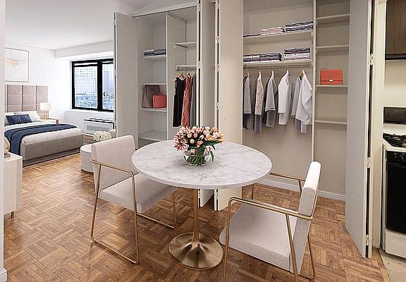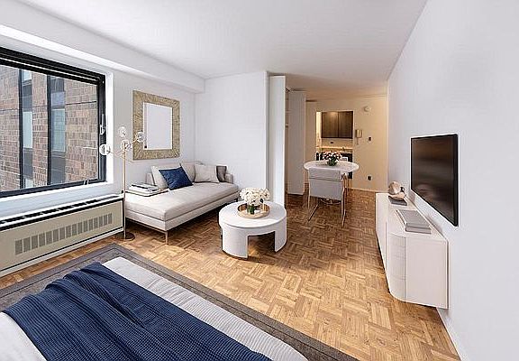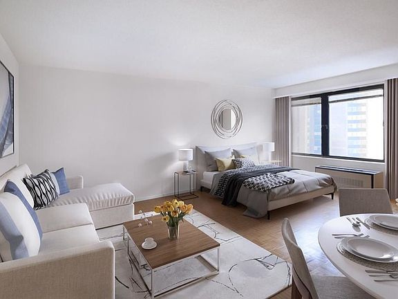 Mid floor studio apartment with classic kitchen, ample closet space, private dressing area, and views west to the city. 424 sq ft. Available now. Currently offering one month free. The rent shown is the Net Effective Rent, with 1 month free on a 12 month lease, given at the beginning of Lease. Tenant will pay the Gross Rent for the remaining months. Two-acred landscaped plaza w/ river and city views, year-round activities schedule, playgrounds, on-site preschool, free Wi-Fi, sundeck, restaurant/lounge on site, groceries, banking, dry cleaning, shopping on-site