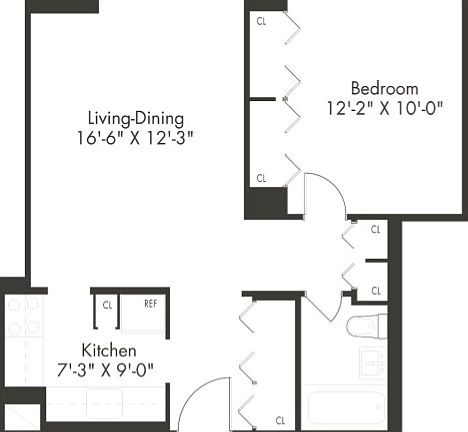 One bedroom apartment with classic kitchen, ample storage space, and north views to the East River and city. 591 sq ft.Two-acred landscaped plaza w/ river and city views, year-round activities schedule, playgrounds, on-site preschool, free Wi-Fi, sundeck, restaurant/lounge on site, groceries, banking, dry cleaning, shopping on-site
