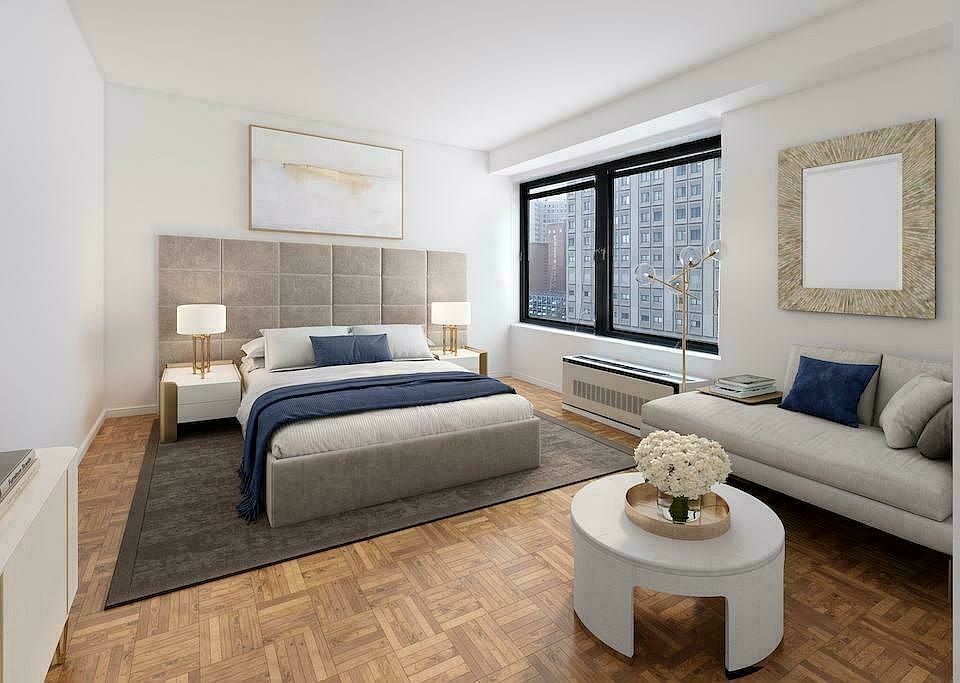 Mid floor studio apartment with classic kitchen, ample storage space with private dressing area, and west views to the city, 424 sq ft. Available 5/31Two-acred landscaped plaza w/ river and city views, year-round activities schedule, playgrounds, on-site preschool, free Wi-Fi, sundeck, restaurant/lounge on site, groceries, banking, dry cleaning, shopping on-site