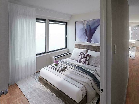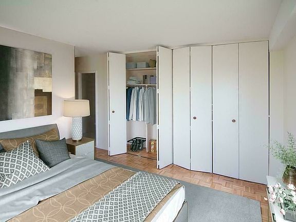 Three bedroom, one and a half bath apartment with spacious foyer, ample storage space, partial kitchen renovation, and high floor west/south/east views to the river and city. 910 sq ft. Available 7/5.The rent shown is the Net Effective Rent, with 3 (or 2) months free on a 12 month lease, given at the beginning of Lease. Tenant will pay the Gross Rent for the remaining months.Two-acred landscaped plaza w/ river and city views, year-round activities schedule, playgrounds, on-site preschool, free Wi-Fi, sundeck, restaurant/lounge on site, groceries, banking, dry cleaning, shopping on-site