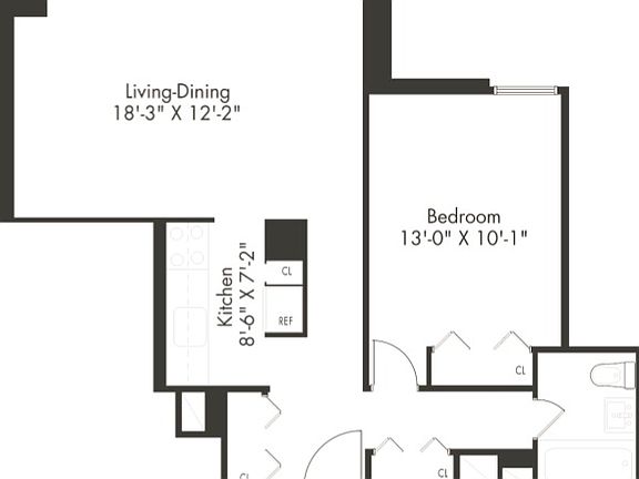 High floor one bedroom apartment featuring new granite and stainless steel kitchen, lots of storage space, and north views of the city and river. 631 sq ft.Two-acred landscaped plaza w/ river and city views, year-round activities schedule, playgrounds, on-site preschool, free Wi-Fi, sundeck, restaurant/lounge on site, groceries, banking, dry cleaning, shopping on-site