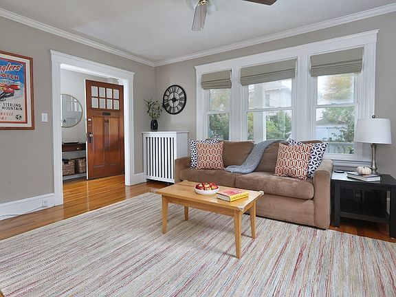 On peaceful side street nestled between the pulse of Arlington Center and East Arlington is 40 Webster, a lovely two bedroom condo that simply says HOME. A sunny front porch and foyer welcome you to this warm, inviting 1st floor unit. Gracious living and dining rooms enjoy large windows with great light, beautiful wood floors, original mouldings + built-in hutch. Plenty of room to work side by side in nicely updated kitchen with extensive granite work surface, beautiful wood cabinets, stainless appliances and easy access to backyard garden. Clever and convenient pass-through pantry doubles as laundry room with 2021 Electrolux W/D. Enhanced by Owner investments - custom radiator covers, elegant roman shades, custom shelving in bedroom closets. Vast storage in dry basement, garage parking plus 2+ additional driveway spaces. Nearby MBTA bus and just blocks to Minuteman Bikeway. Grab a coffee in the Center, head over to Spy Pond, hop on bus to Harvard Sq., all within reach of 40 Webster!