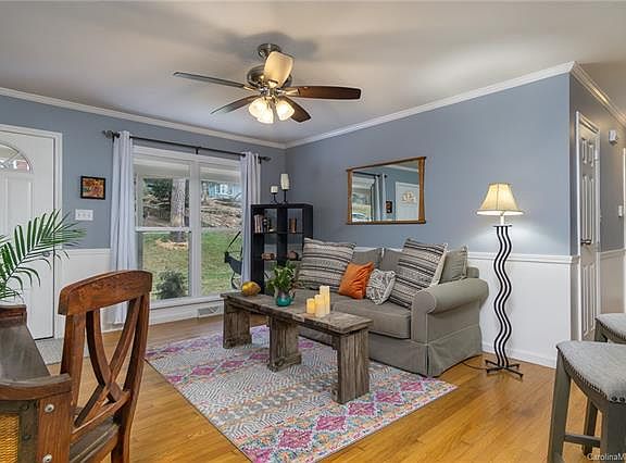 5/3 in Malvern Hills, West Asheville. Permitted Vacation Rental (2018-19). This sweet home features hardwood floors, a large kitchen with stainless steel appliances, crown molding, and chair railing, cozy wood-burning fireplace. Split HVAC for the upper/ lower level. The large vacation rental space is already plumbed in for a second kitchen. From the expansive back deck, you can look over a lush backyard filled with sunshine perfect for gardening and entertaining. For the nature lover, the large yard backs up to peaceful woods with a trail along the creek. Seller is a licensed NC Realtor