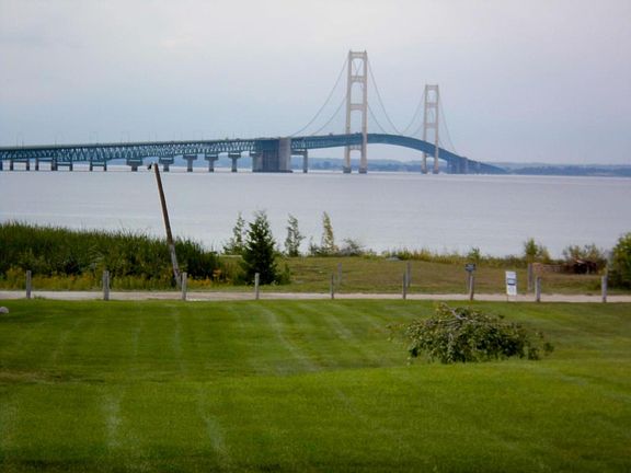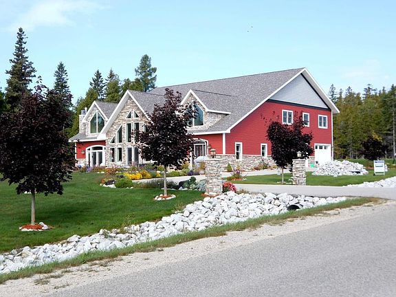 Exquisitely Designed Home offering a breathtaking view of the Mackinac Bridge & Lake Michigan! 6400 SF, 5 BR/4.5 BA with cathedral ceilings, hardwood, ceramic tile & carpet flooring. Main floor includes a beautiful custom kitchen, open living/dining concept with fireplace & many windows,the master suite,office & game room. Upper level features a full kitchen/dining/living area, 4 bedrooms & 2 baths. Attached 2 car garage & in-ground lawn sprinkler system.